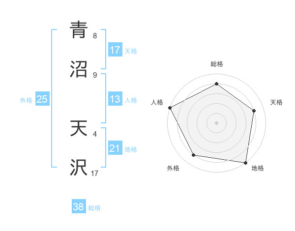 青沼 天沢さんの総格は38画の4点!