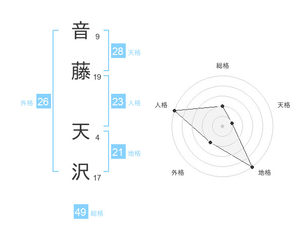 音藤 天沢さんを姓名の画数から五運を鑑定