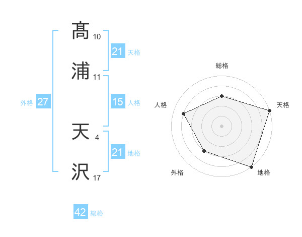 髙浦 天沢さんを姓名の画数から五運を鑑定