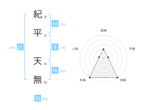 紀平 天無さんの総格は30画の2点