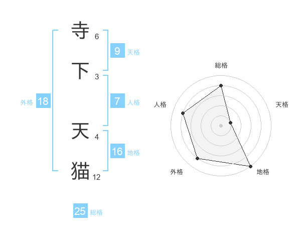 寺下 天猫さんを姓名の画数から五運を鑑定