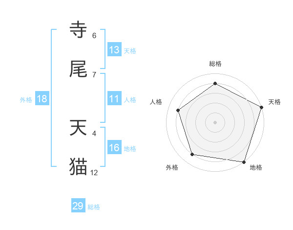 寺尾 天猫さんを姓名の画数から五運を鑑定