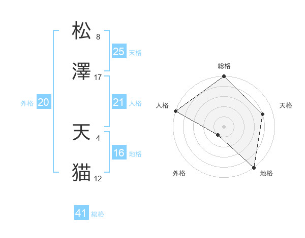 松澤 天猫さんを姓名の画数から五運を鑑定