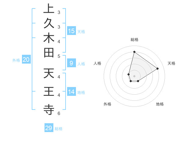上久木田 天王寺さんを姓名の画数から五運を鑑定