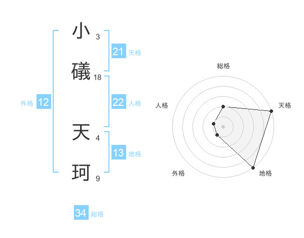 小礒 天珂さんの総格は34画の2点!