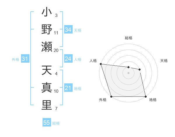 小野瀬 天真里さんを姓名の画数から五運を鑑定