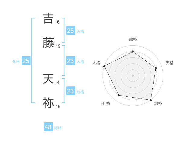 吉藤 天祢さんを姓名の画数から五運を鑑定