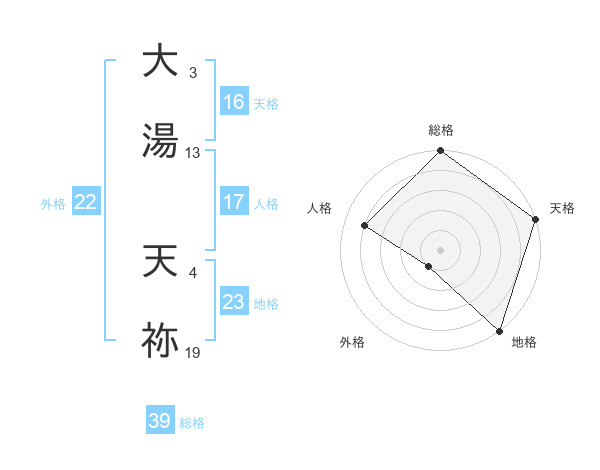 大湯 天祢さんの天格は16画の5点!
