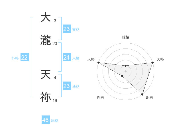 大瀧 天祢さんを姓名の画数から五運を鑑定