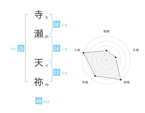 寺瀬 天祢さんの外格は25画の4点!