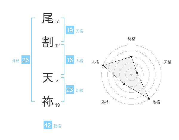 尾割 天祢さんを姓名の画数から五運を鑑定
