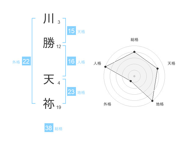 川勝 天祢さんの総格は38画の4点!
