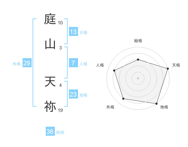 庭山 天祢さんの総格は36画の3点!