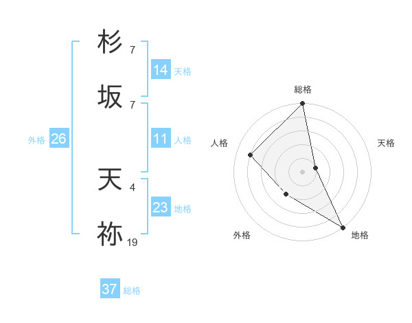 杉坂 天祢さんの総格は37画の5点!