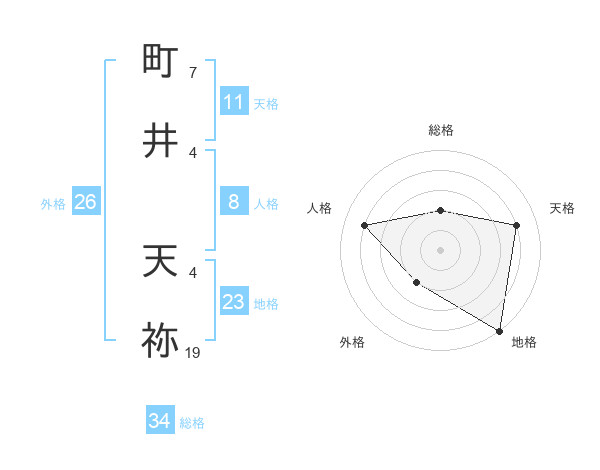 町井 天祢さんの総格は34画の2点!