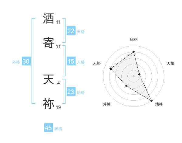 酒寄 天祢さんの総格は45画の4点!