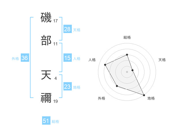 磯部 天禰さんを姓名の画数から五運を鑑定