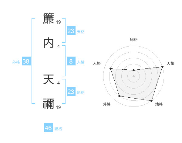 簾内 天禰さんの外格は38画の4点!
