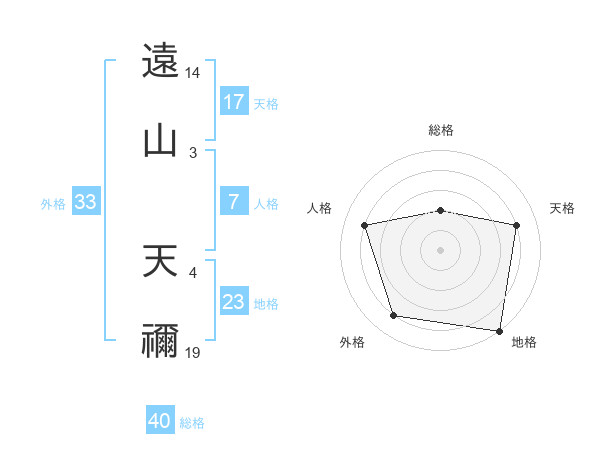 遠山 天禰さんを姓名の画数から五運を鑑定