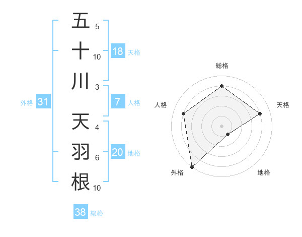 五十川 天羽根さんを姓名の画数から五運を鑑定