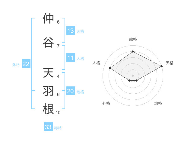 仲谷 天羽根さんの総格は33画の4点!