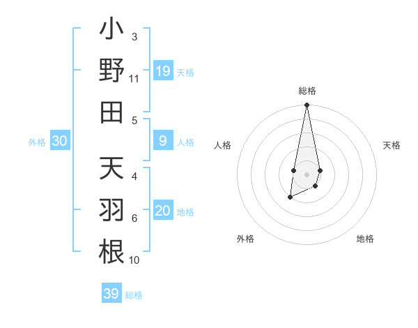 小野田 天羽根さんを姓名の画数から五運を鑑定
