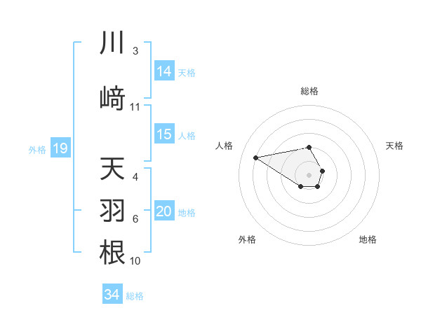川﨑 天羽根さんの総格は34画の2点!