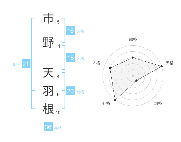 市野 天羽根さんを姓名の画数から五運を鑑定