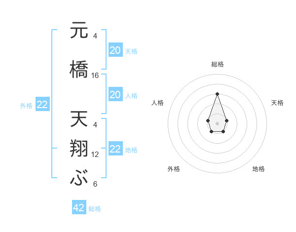 元橋 天翔ぶさんを姓名の画数から五運を鑑定