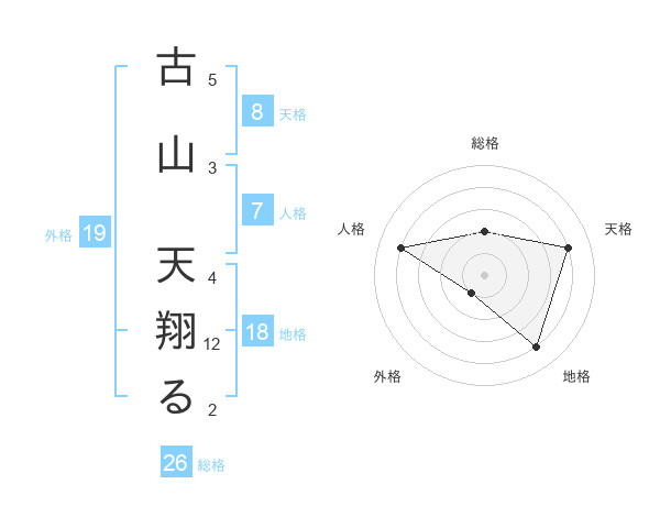 古山 天翔るさんを姓名の画数から五運を鑑定