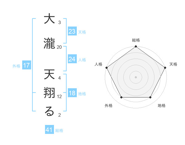 大瀧 天翔るさんを姓名の画数から五運を鑑定