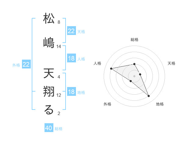 松嶋 天翔るさんを姓名の画数から五運を鑑定