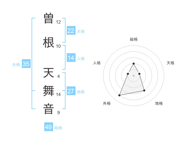 曽根 天舞音さんを姓名の画数から五運を鑑定