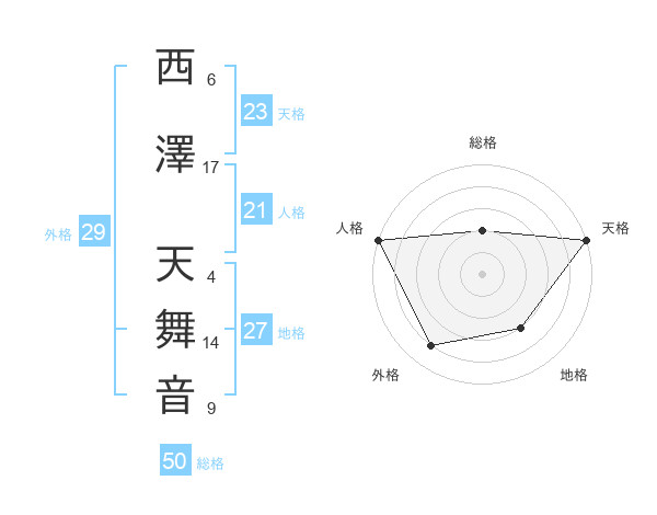 西澤 天舞音さんを姓名の画数から五運を鑑定