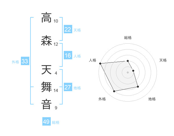 高森 天舞音さんの外格は33画の4点!