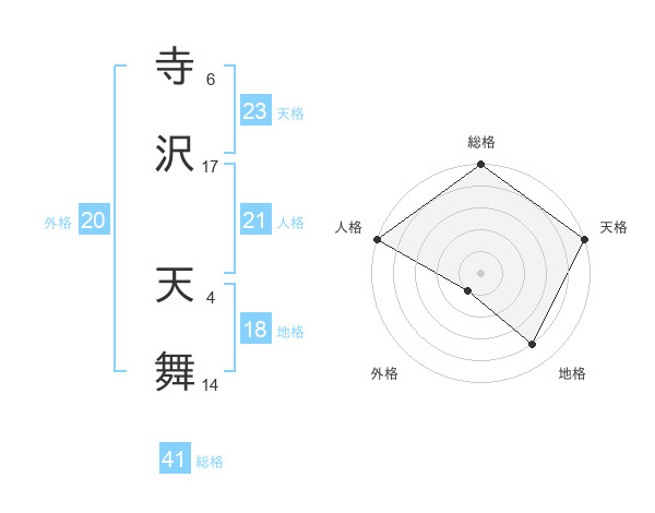 寺沢 天舞さんの天格は23画の5点!