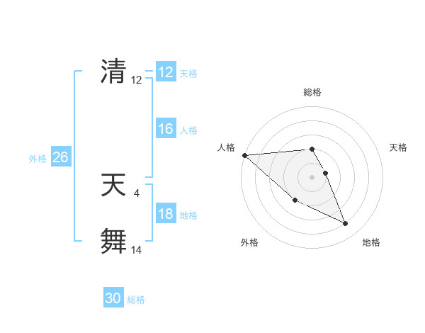 清 天舞さんの総格は30画の2点!