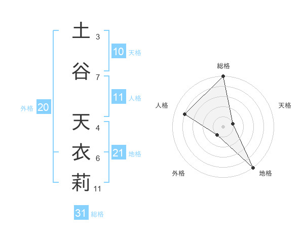 土谷 天衣莉さんを姓名の画数から五運を鑑定