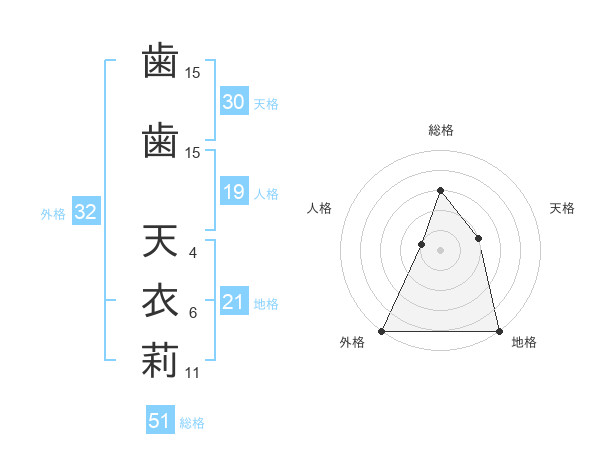 歯歯 天衣莉さんを姓名の画数から五運を鑑定