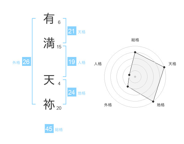 有満 天袮さんの天格は21画の5点!