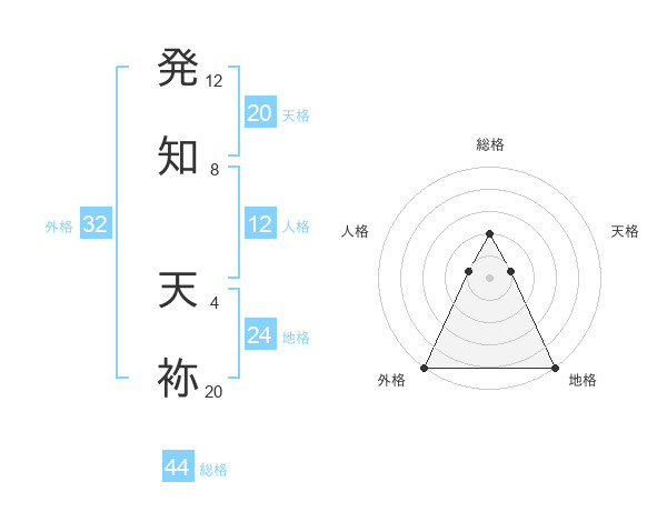 発知 天袮さんの総格は44画の2点!