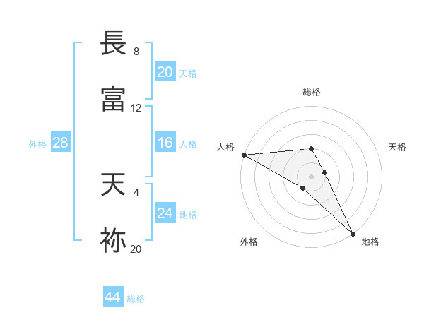 長富 天袮さんの地格は24画の5点!