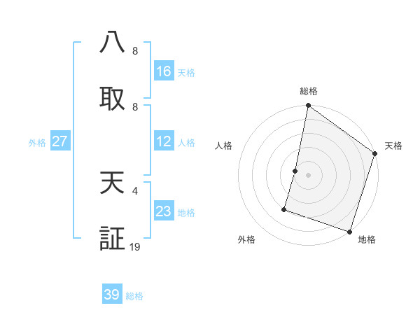 八取 天証さんの総格は39画の5点!