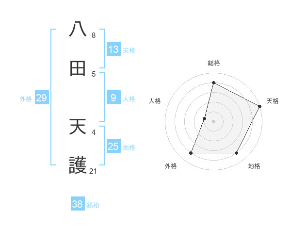 八田 天護さんを姓名の画数から五運を鑑定