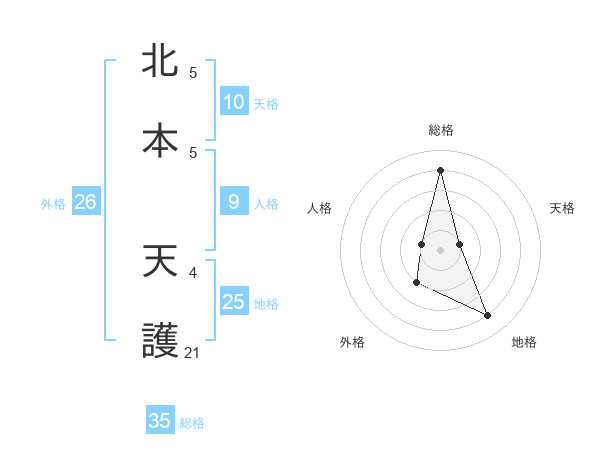 北本 天護さんの地格は25画の4点!