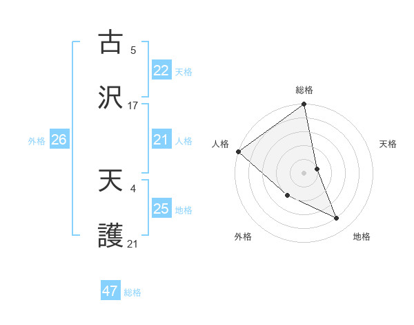 古沢 天護さんの総格は47画の5点!
