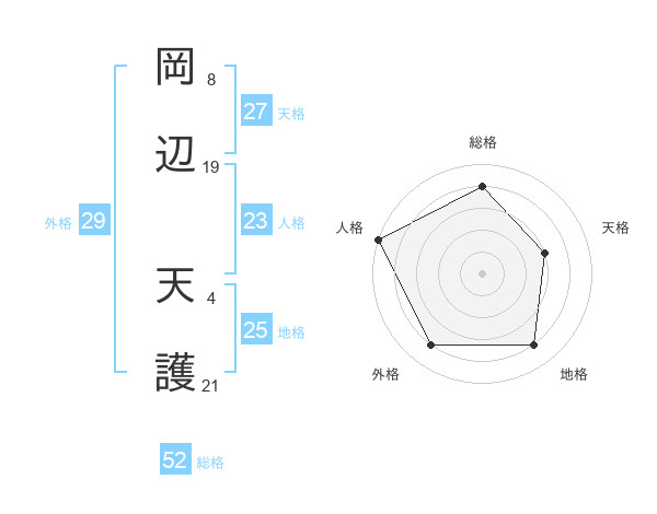 岡辺 天護さんの総格は52画の4点!