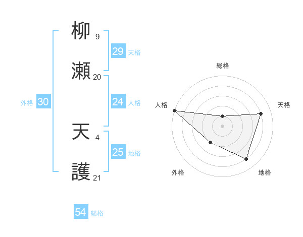 柳瀬 天護さんの総格は54画の1点!
