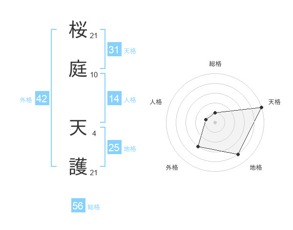 桜庭 天護さんの総格は56画の1点!