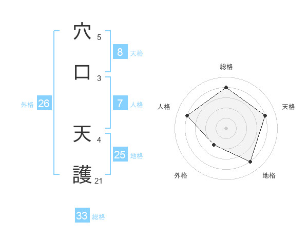 穴口 天護さんの総格は33画の4点!
